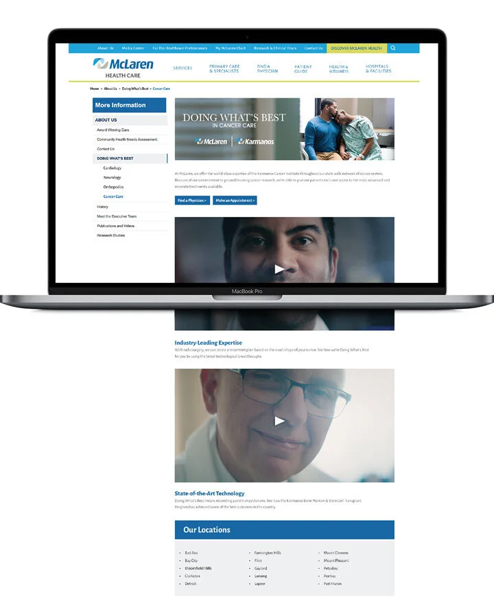 After becoming AOR for McLaren, we were given the opportunity to also take on their partner company, Karmanos Cancer Institute. The challenge? How to convey these two brands are related, yet still give them each a unique personality. We achieved this by taking a spin on McLaren’s brand line to create Karmano’s campaign, “Your Best Chance.” Cancer is scary, Karmanos is there every step of the way to give you all the personalized care and information you deserve to have “Your Best Chance.”